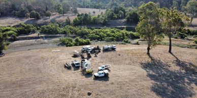 SEQ Drilling were contracted to complete a crossing of 275 meters below a river within a cattle property. The greatest challenge being logistics and access to the site. Access to the launch side of the side was by 4x4 or high clearance truck only and involved crossing a rock causeway through another point of the river. SEQ Drilling were able to walk in a tracked HDD rig, and offer specialized trucks and vehicles to transport water tanks and fluid recyclers onto site rather then typical use of trailer mounted units. Access to the receiving pit was via a steep 4x4 track over a mountain. With no option for a return pump or vacuum truck for drilling mud, the bore was designed by SEQ drilling to that the pilot bore was stopped short, and reaming conducted in a forward reaming arrangement to force the drilling fluids to return to the launching side. On completion of reaming a tracked excavator was taken across the track and dug a hole on the bore line to pull in product pipe. Product pipe was strung and welded on the launch side, then pulled across the river using one of our Vermeer Tractors.